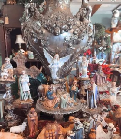 Welcome in to The Homestead Antiques & Interiors! We have a large selection of beautiful antiques and vintage collectibles that includes furniture, jewelry, home decor, linens, holiday decor, kitchen wares and so much more! Be sure to check out our facebook for more photos and video! We can't wait to see you!